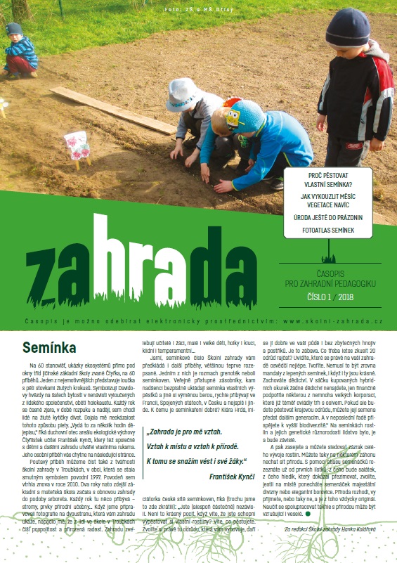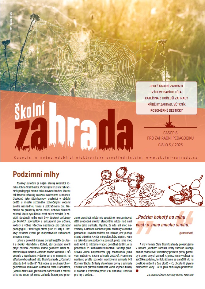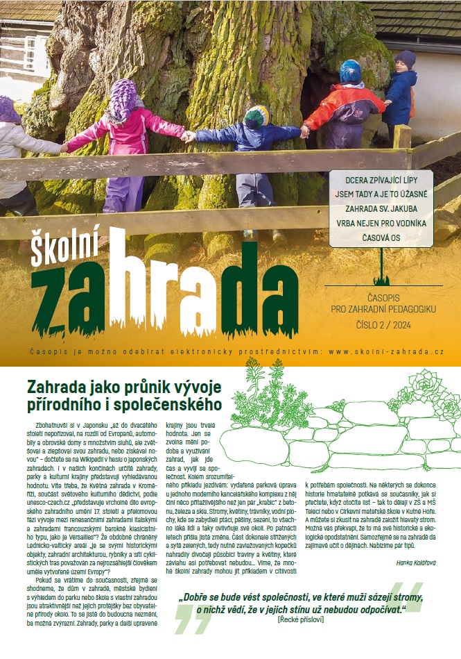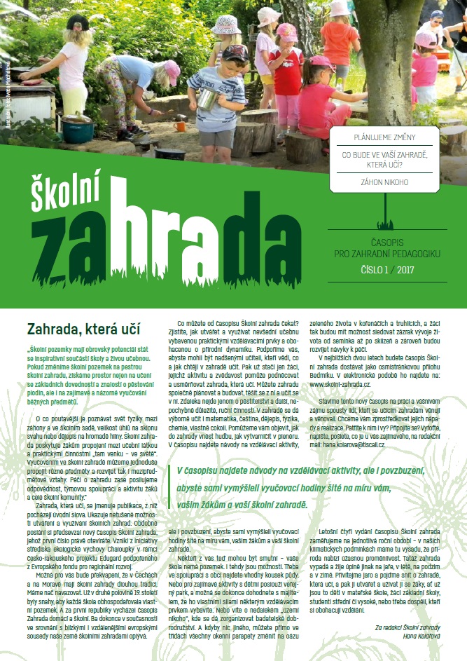 Najdete v něm náměty pro školní zahrady mateřských, základních i středních škol a dále také tipy na metodické materiály a literaturu, na odborné zahradnické, ale i metodické semináře.
