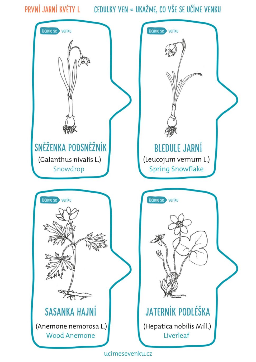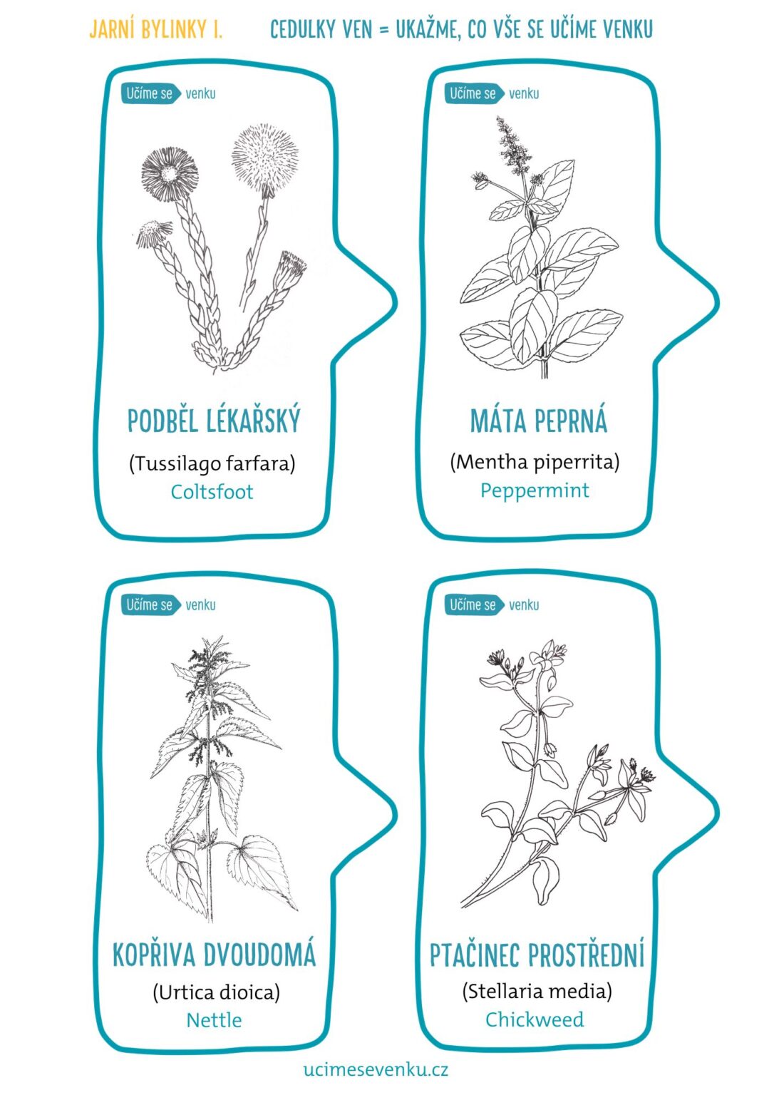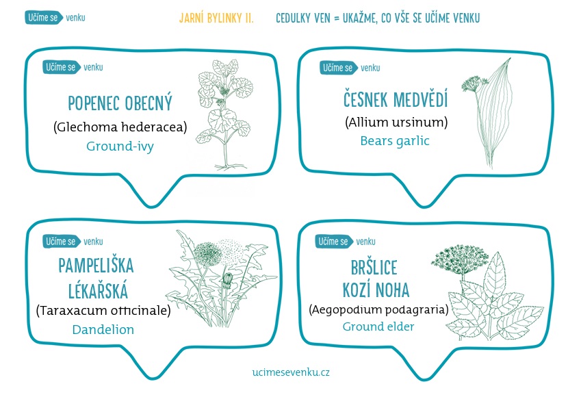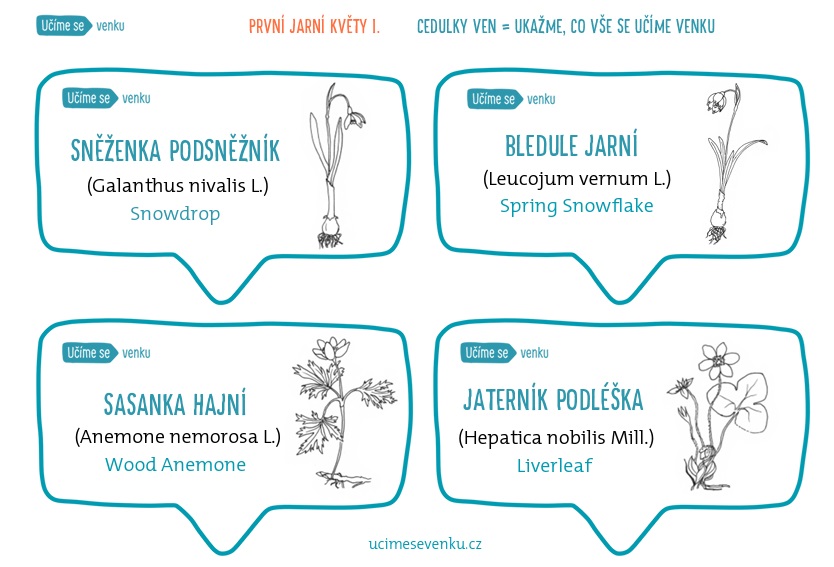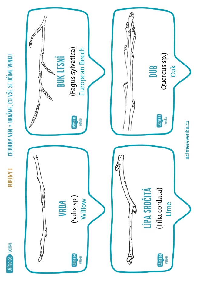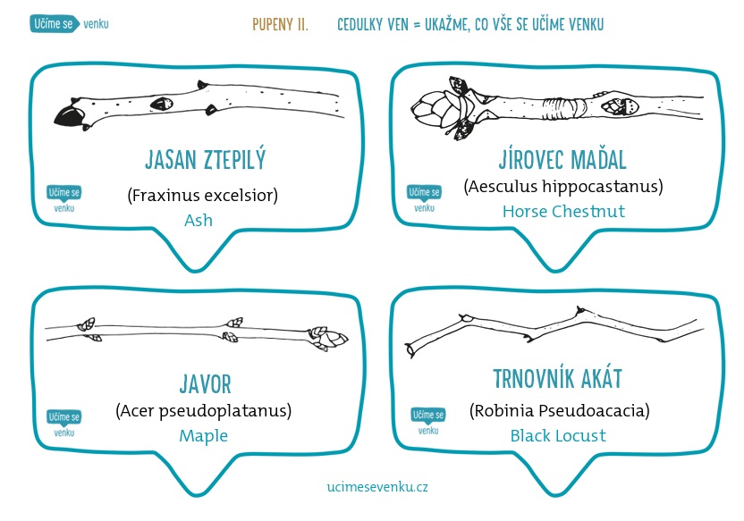 Cedulky obsahují obrázek, český, latinský a anglický název.