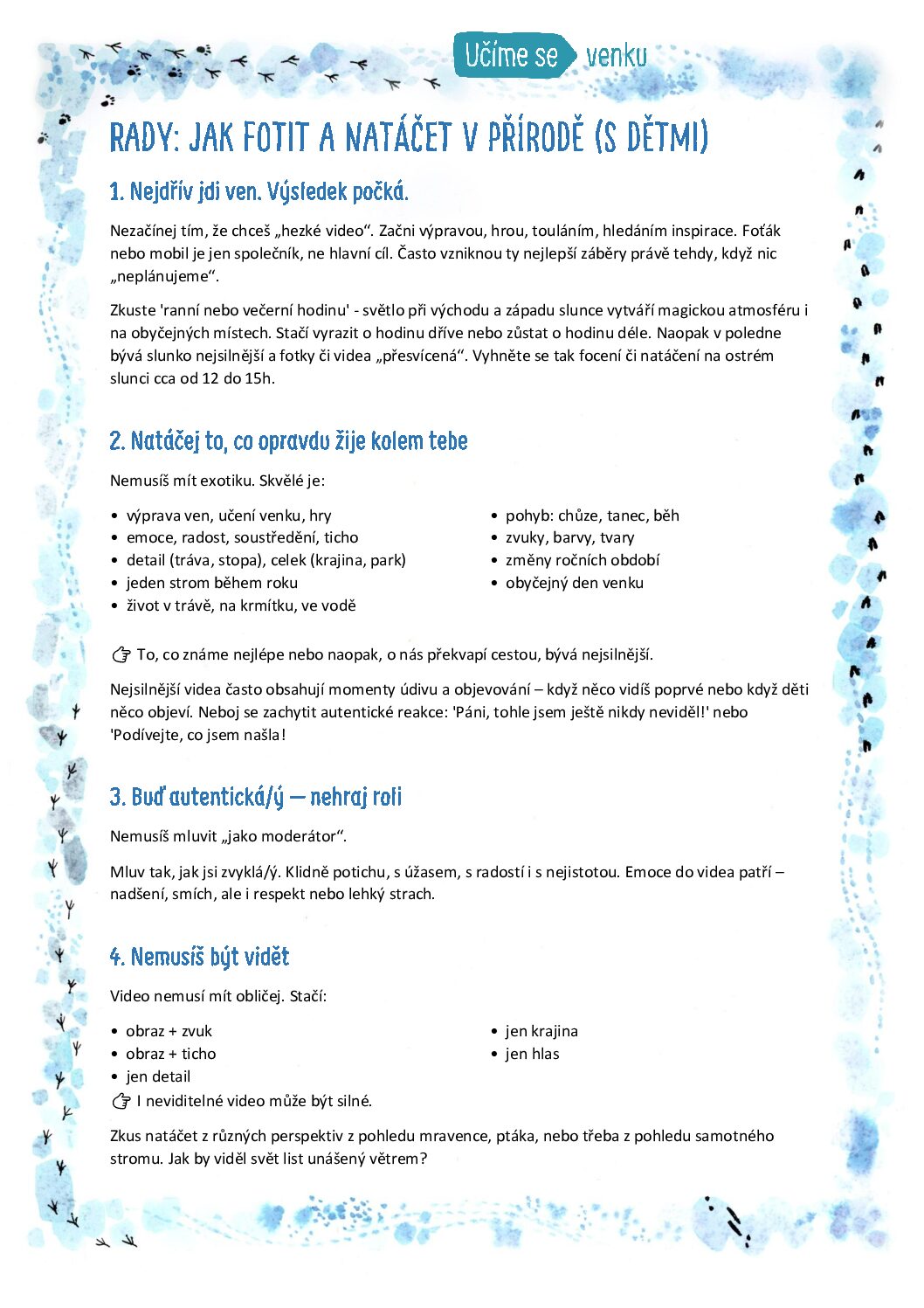 1. Nech se inspirovat našimi videi nebo vyraz sám ven a objevuj přírodu kolem sebe.